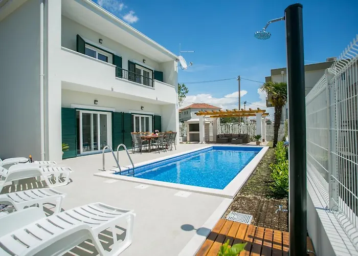 Situé à 2 km de la Cathédrale Saint-Laurent de Trogir, cet établissement Villa Iva Trogir dispose d'une terrasse avec une vue sur la mer. Vous pourrez vous détendre au bord d'une piscine et profiter de la proximité de la Marina Baotić, qui se trouve à 7 minutes à pied.